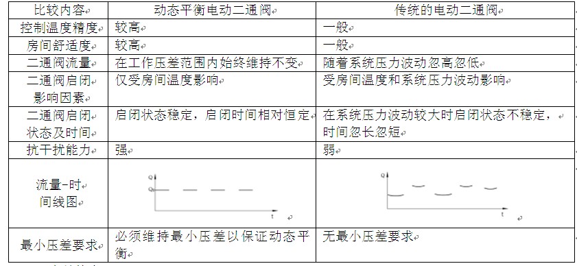 電動二通閥的開啟和關(guān)閉來調(diào)節(jié)房間溫度)還具有動態(tài)平衡的作用,即能在系統(tǒng)壓力波動時始終維持