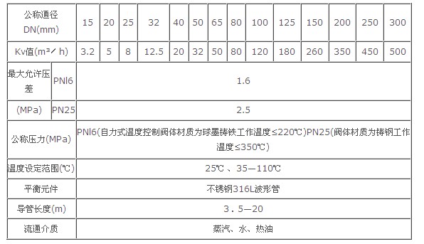 自力式溫度控制閥如何選型,下面是參數(shù)表,可以按照以下參數(shù)來(lái)具體選型: