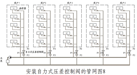 自力式壓差控制閥的用戶圖8所示,各用戶單元入口處安裝了