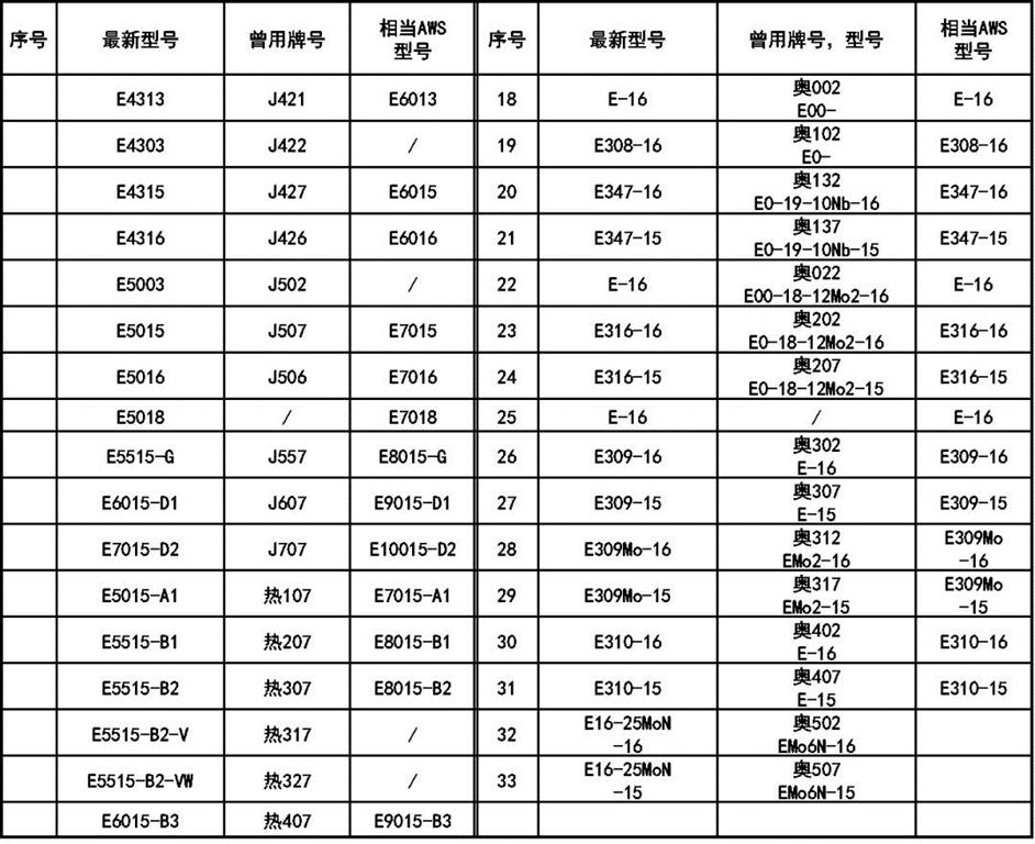 碳鋼(GB5117),低合金鋼(GB5118),不銹鋼(GB983)焊條新舊對照表