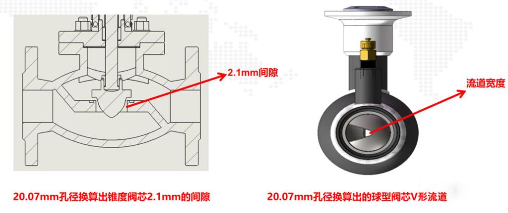 以DN50為例: 同樣是1米壓差下,通過3m³/h流量。左邊圖:是錐度閥芯2.1mm調(diào)節(jié)間隙,右邊圖是球型閥芯W(wǎng)口的流道寬度。通過對比,哪一種更適合目前的供熱系統(tǒng),可一目了然。