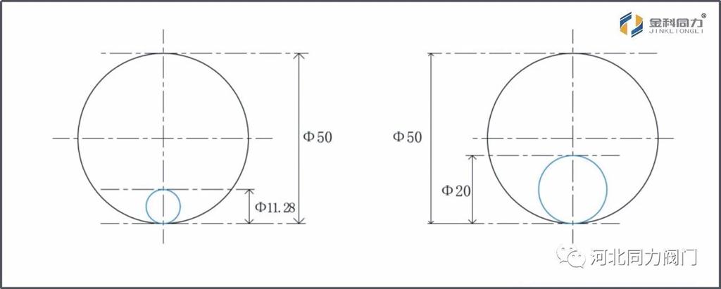 DN50口徑閥門(mén),獲得是3m³/h流量時(shí),10m壓差下孔徑為11.28mm,1m壓差下孔徑為20.07mm,也就是說(shuō)10m壓差下,11.28mm的孔徑,和1m壓差下20.07mm的孔徑就可以滿足1000多㎡供熱用戶的流量需求。