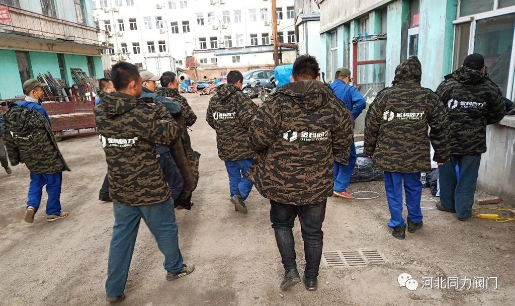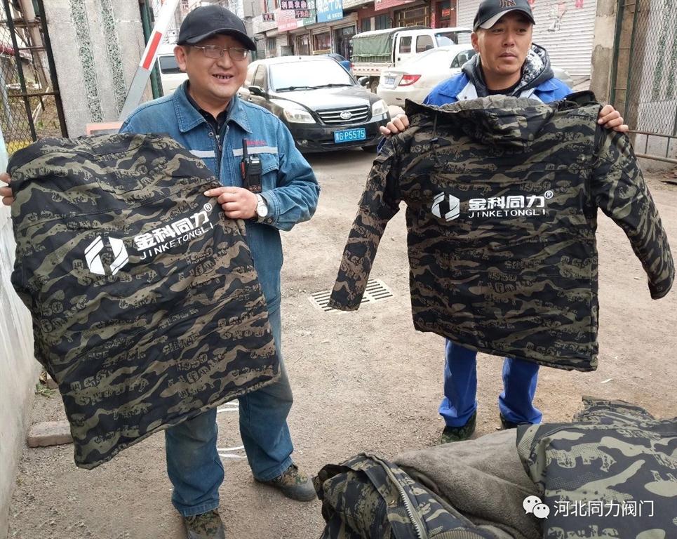 為保障老百姓及時(shí)取暖,供熱公司一線員工不畏嚴(yán)寒,兢兢業(yè)業(yè)地進(jìn)行閥門安裝、產(chǎn)品維修、網(wǎng)管調(diào)試等一系列工作,其間辛勞,同力人深知,故此,我司每至一地,都將御寒棉服發(fā)放到供熱工人師傅手中,讓每位一線工人師傅都能在寒冷的冬季切身體會(huì)到溫暖與關(guān)懷。