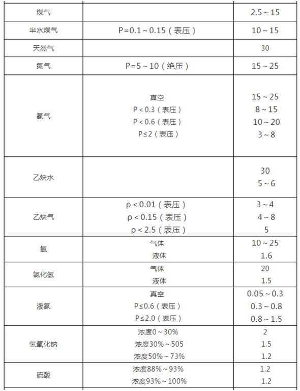 介質(zhì)的流速大,閥門(mén)通徑可以小些,但阻力損失較大,閥門(mén)易損壞。流速大,對(duì)易燃易爆介質(zhì)會(huì)產(chǎn)生靜電效應(yīng),造成危險(xiǎn);流速太小,效率低,不經(jīng)濟(jì)。對(duì)粘度大和易爆的介質(zhì),應(yīng)取較小的流速。油及粘度大的液體隨粘度大小選擇流速,一般取0.1~2m/s。