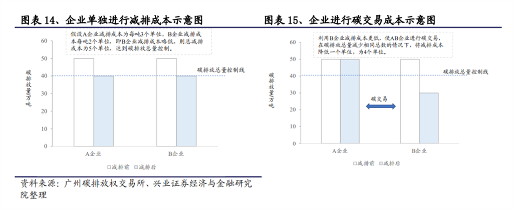 這樣以來,A公司剩余的碳配額就滿足了B公司的碳排放需求,碳交易終得以實現(xiàn)。