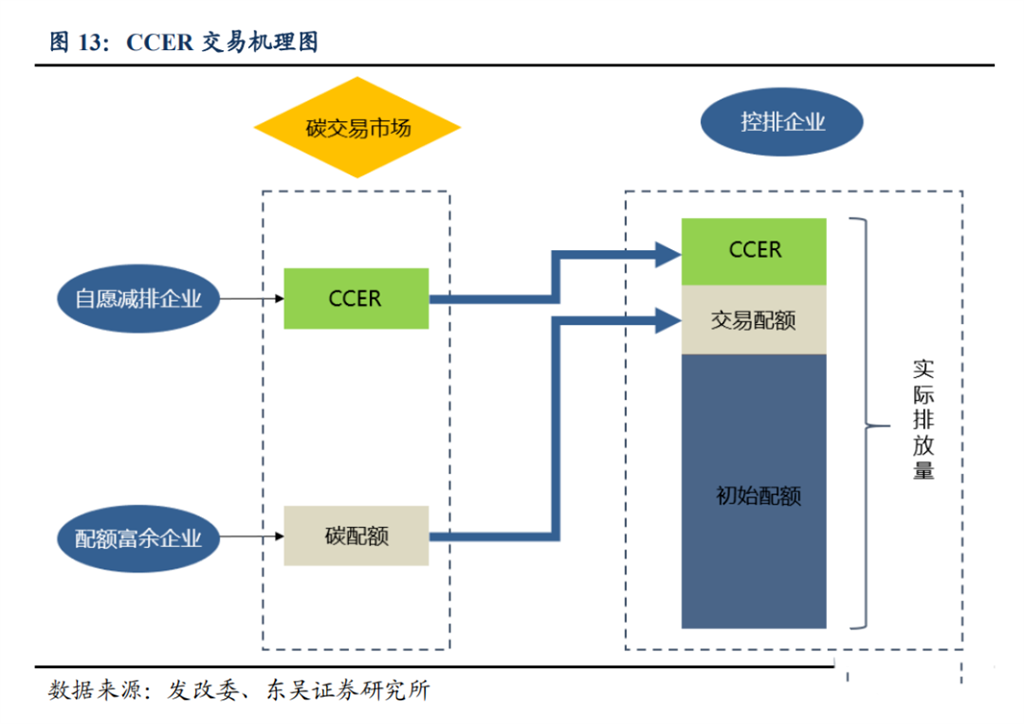 第2類,作為補充,在配額市場之外引入自愿減排市場交易,即 CCER 交易。CCER 交易指控排企業(yè)向?qū)嵤?#8220;碳抵消”活動的企業(yè)購買可用于抵消自身碳排的核證量。