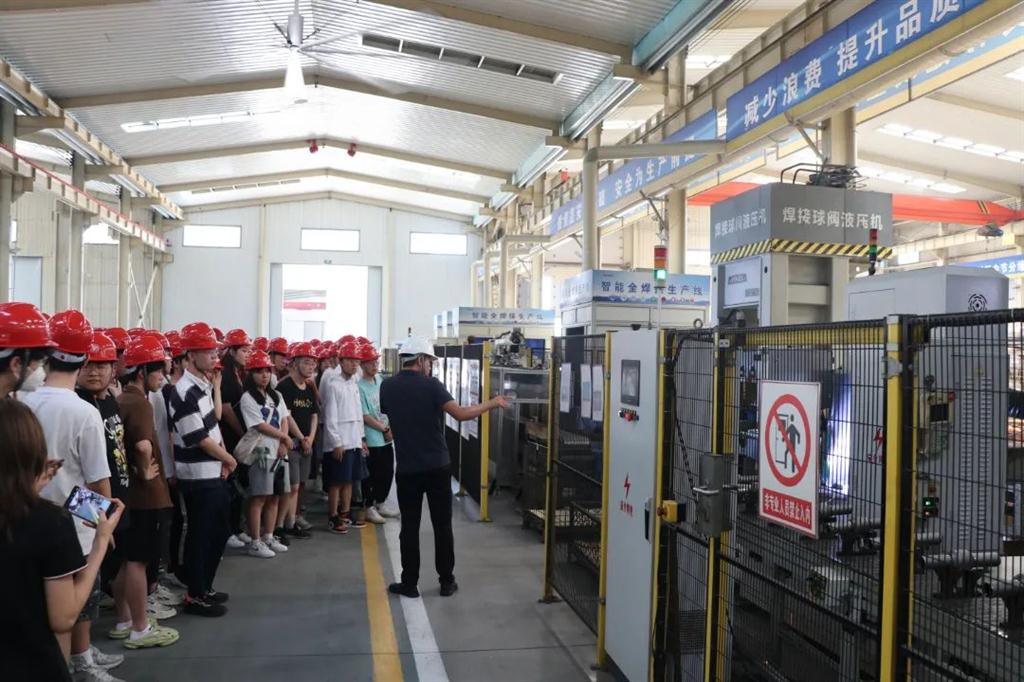 隨后,太原理工大學的師生們走進生產(chǎn)車間進行了參觀,我司技術總監(jiān)詳細的介紹了閥門的生產(chǎn)流程、先進的生產(chǎn)設備及車間管理的模式。在參觀過程中,同學們以謙虛的態(tài)度向工作人員積級提問,而工作人員也仔細的為同學們進行了解答。