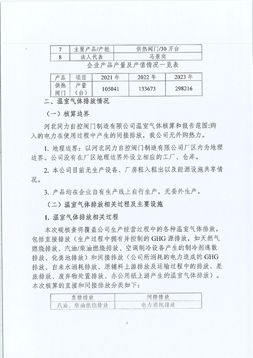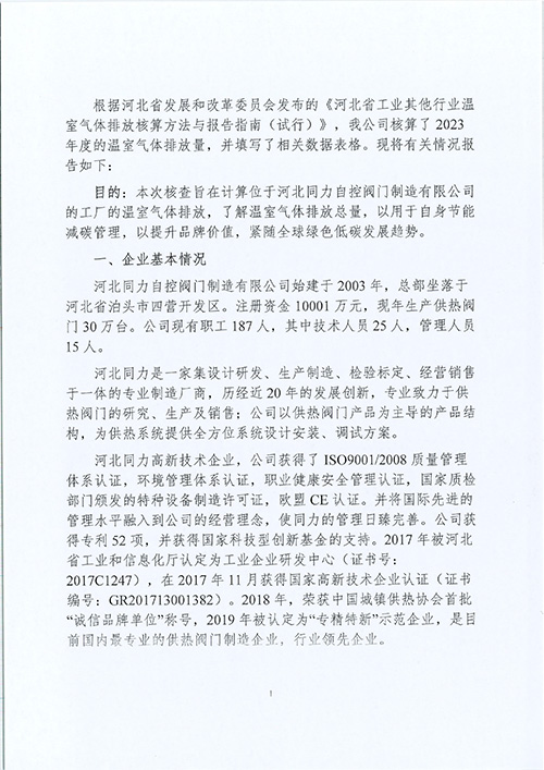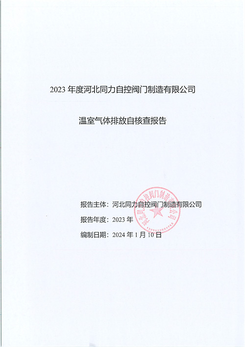 自控閥門|同力自控閥門|自控閥門制造-2023年度河北同力自控閥門制造有限公司溫室氣體排放自核查報告-