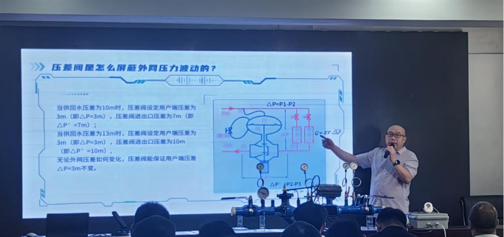 隨后,同力總經(jīng)理馬勝通過講解自力式壓差控制閥的工作原理和調(diào)試,詳細解釋了壓差閥是怎么屏蔽外網(wǎng)壓力波動的,是怎么支持熱用戶主動變流量的等問題。馬勝總經(jīng)理深入淺出的講解,使參會的技術(shù)骨干對壓差閥有了更深入的理解與認(rèn)識,為今后壓差閥的實際應(yīng)用提供了強有力的理論基礎(chǔ)。