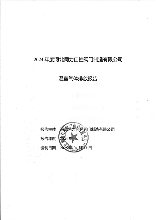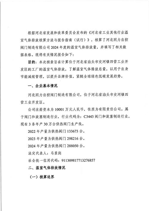 同力自控閥門-2024年度河北同力自控閥門制造有限公司溫室氣體排放報告-